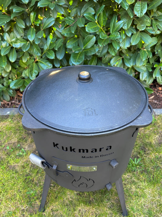 Set Kukmara 15 Liter Utschak mit Abzugsrohr und 16 Liter Kasan aus Gusseisen